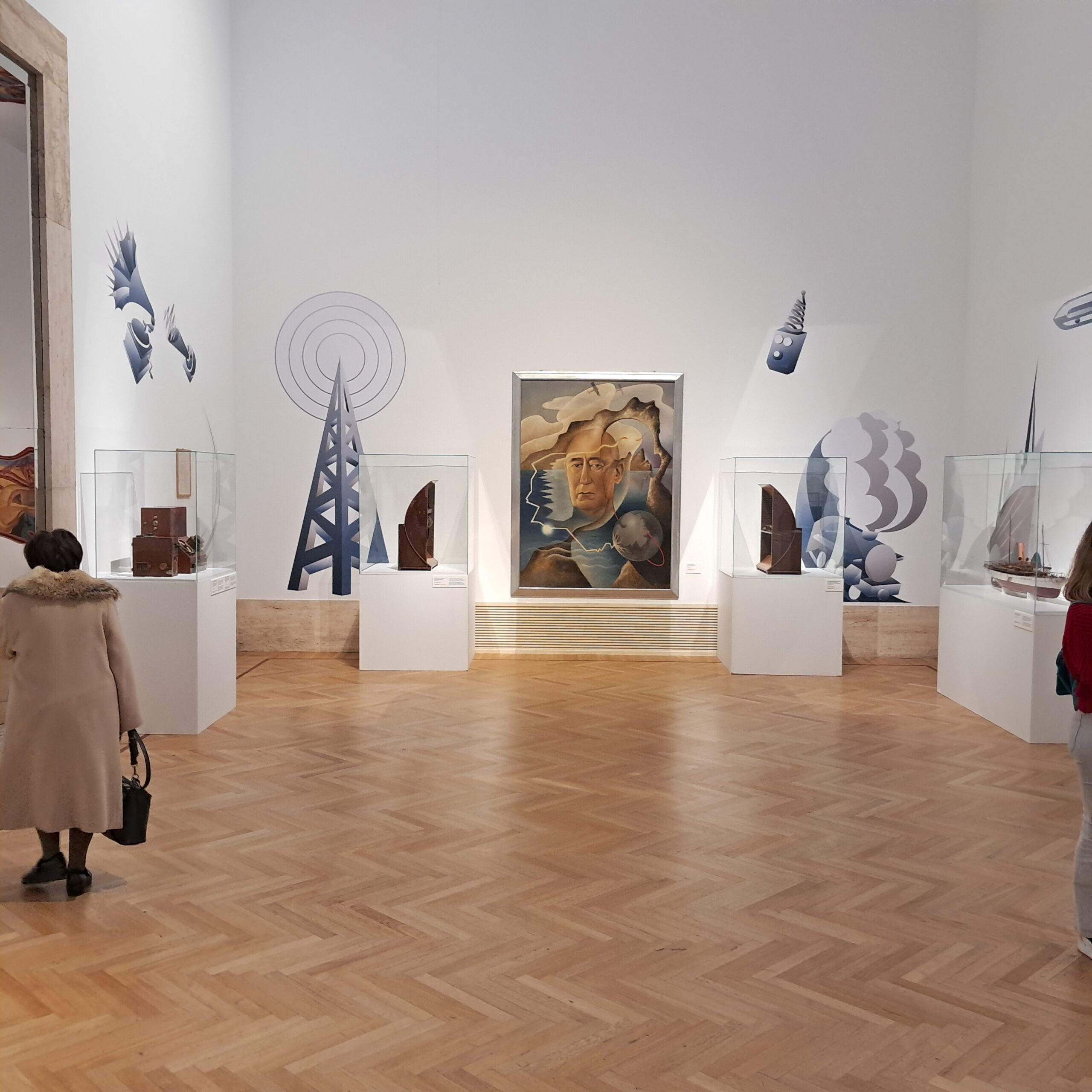 “Rimandata, propagandata, attraversata dai malumori e diffide, da comitati scientifici saltati, alla fine l’esposizione si è «rivelata», occupando con un’infilata di 350 opere 26 sale della Gnamc (divise per sezioni che fanno riferimento a più discipline, dall’architettura al cinema alla letteratura con propaggini nell’arte degli anni ’60), proprio nei giorni che seguono l’annuncio di Fitto il quale, prima di andarsene, ha sforbiciato pesantemente i fondi al Mic. «Una mostra fatta in casa», ha affermato la neodirettrice della Galleria nazionale Renata Cristina Mazzantini, intendendo le sinergie fra istituzioni governative e museali sparse sul territorio nazionale, mentre il curatore Gabriele Simongini assicura di non essere stato ideologico nella costruzione della rassegna, «non c’è alcuna volontà di legare il Futurismo alla destra o alla sinistra perché sarebbe ingiusto nei confronti di artisti così grandi e geniali».